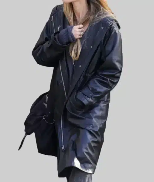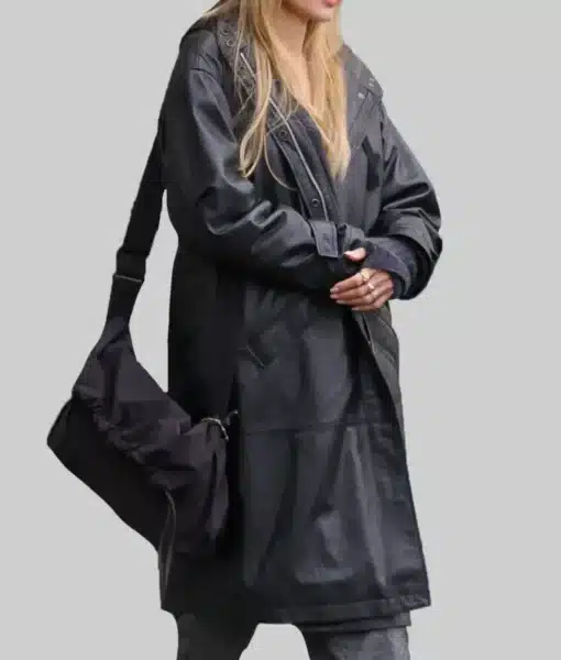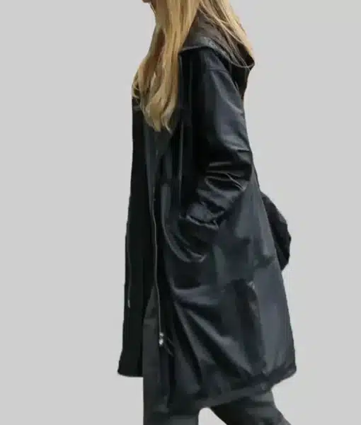 Angelina Jolie Black Leather Hooded Coat