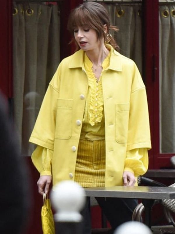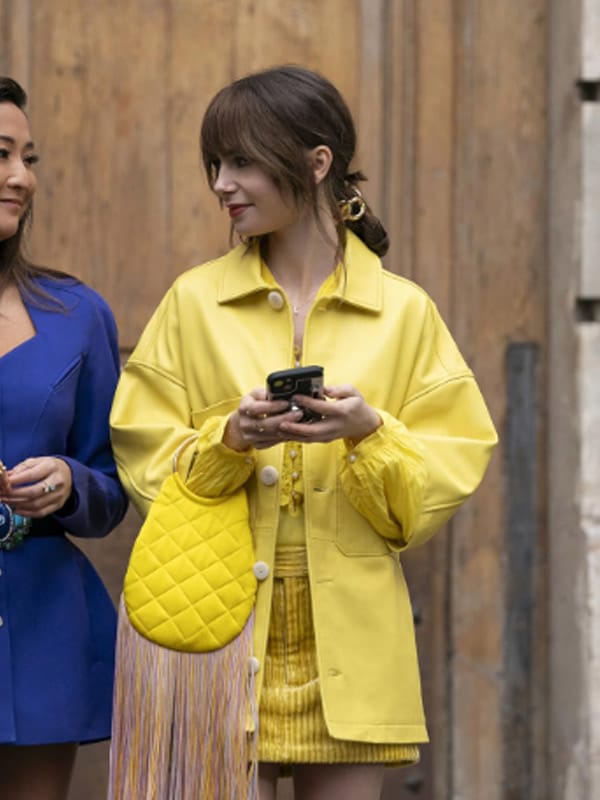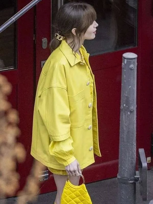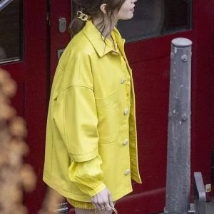 Emily In Paris S04 Lily Collins Yellow Leather Jacket