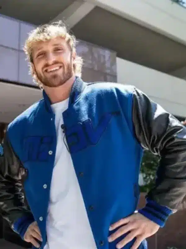 Logan Paul Blue and Black Bomber Wool Fabric and Real Leather Jacket