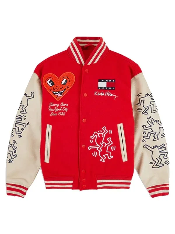 Mens Keith Haring Varsity White and Red Jacket