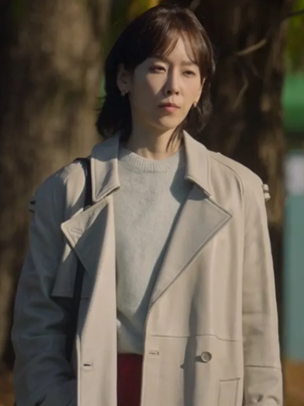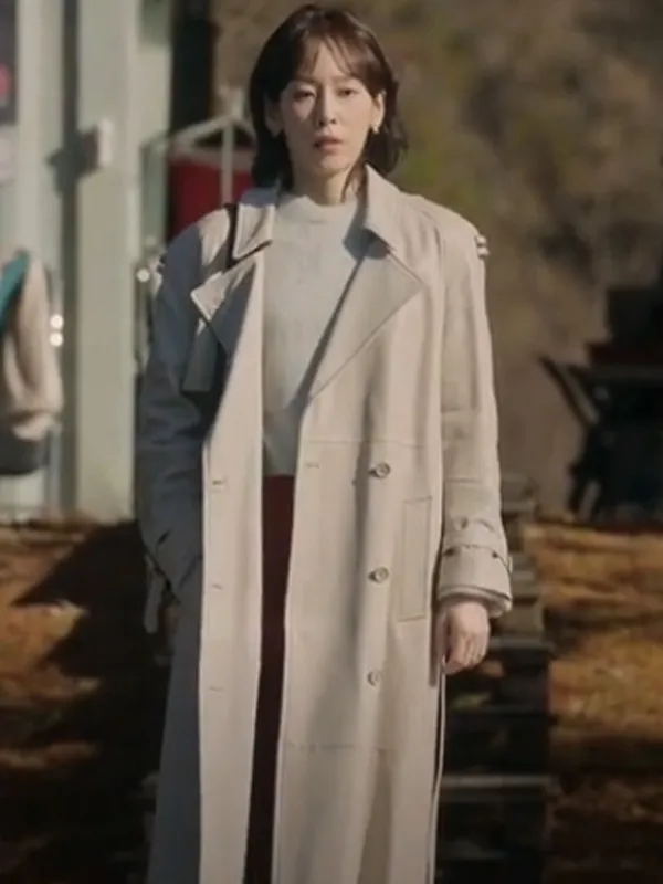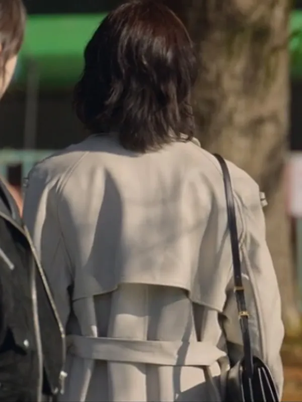 - Front: Double Breasted Buttoned and Belted Closure